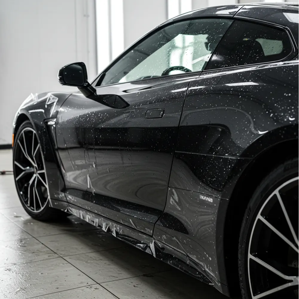 The hydrophobic surface repels dust, dirt, and water, keeping your car cleaner for longer. Rainwater beads and slides off effortlessly, leaving minimal residue. Routine cleaning requires only a pH-neutral car shampoo and a soft microfiber cloth to restore the glossy finish. For stubborn contaminants, an isopropyl alcohol solution can be gently applied. Unlike traditional paint surfaces, PPF requires no waxing, maintaining a bright, smooth appearance with minimal effort.